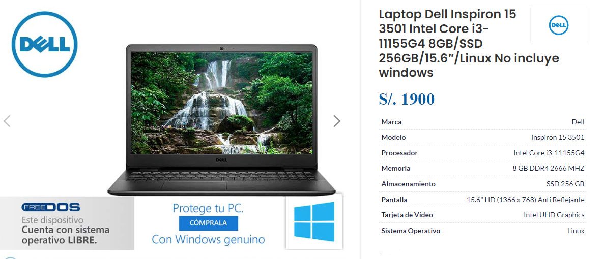 PROCESADOR INTEL CORE i3-11155 / 8 GB RAM / DISCO SOLIDO 256 GB