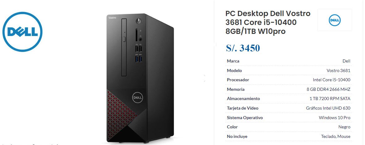 No incluye mouse ni teclado