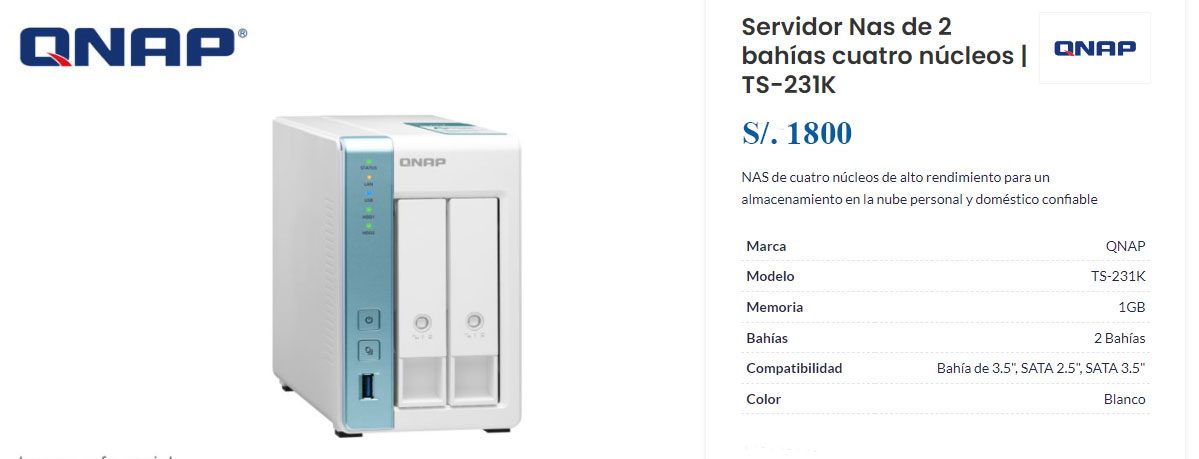 SERVIDOR NAS DE 2 BAHIAS / 4 NUCLEOS / MEMORIA 1 GB